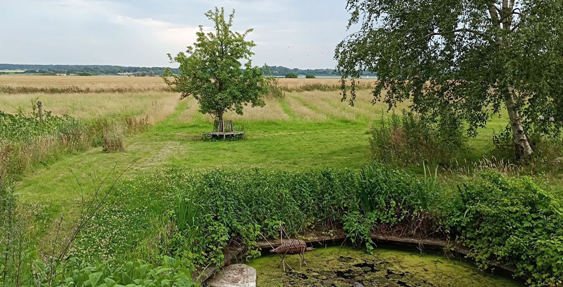 und den Alltag vergessen. Aus dem Wohnbereich hat man im Winter sogar Schleiblick (als größerer Mensch :). Weitblick hat man zu jeder Jahreszeit über Wiese und Feld hinunter zur Schlei. Die zwei Schlafzimmer bieten Platz und Komfort für bis zu 4 Personen, das Bad ist geräumig und hat eine großzügige ebenerdige Dusche. Im Wohn-, Ess- und Küchenbereich hast du wie im